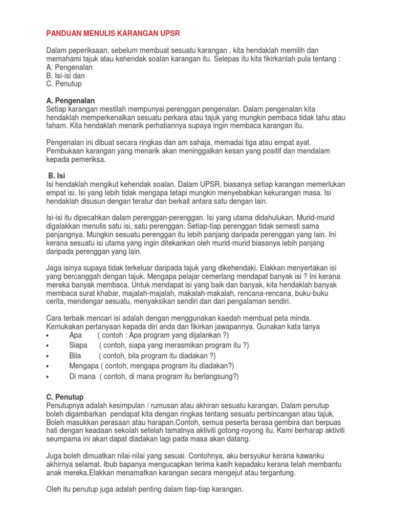 Panduan Menulis Karangan Upsr Pdf